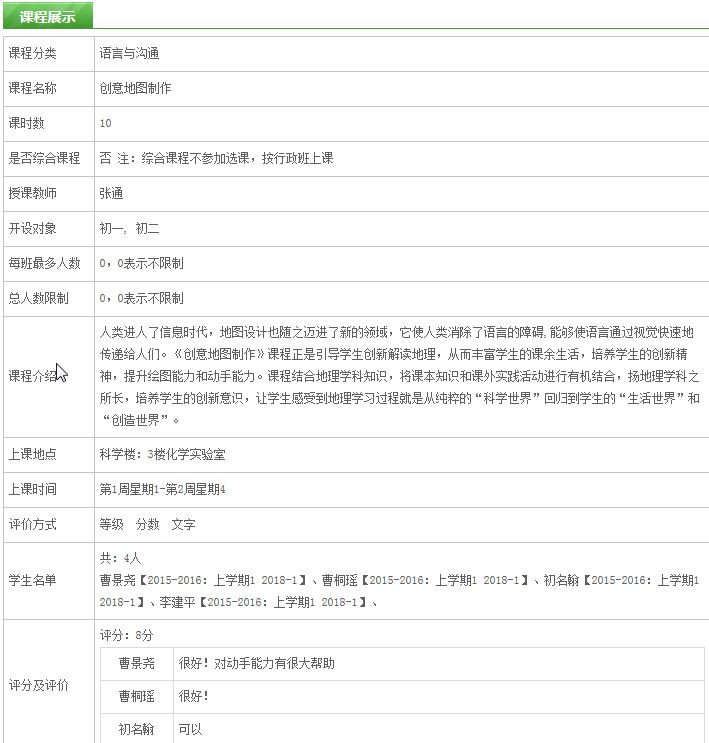 本选课系统具备常用的选课功能,老师先申报课程,学校批准,开通选课,每门课程设置了课程允许的最多人数和每班允许选的人数,老师上课可以给学生考勤,课程完后可以给学生评级,采用Ajax技术,提高了访问速度。 官方网站:天晓网络 www.schoolMS.net 、http://www.ixuanke.net/ 联系QQ:27134474 ,手机微信:13433282575 试用地址:点击打开试用 微信选课,请关注微信公众号体验。